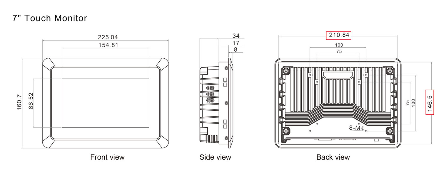 I-View™ PM-SH070-C109 Industrial Panel Mount TFT LCD Monitor with Multi Touch PCAP Touchscreen. I-View™ PM-SH070 offer 3 different types of input options for different applications.