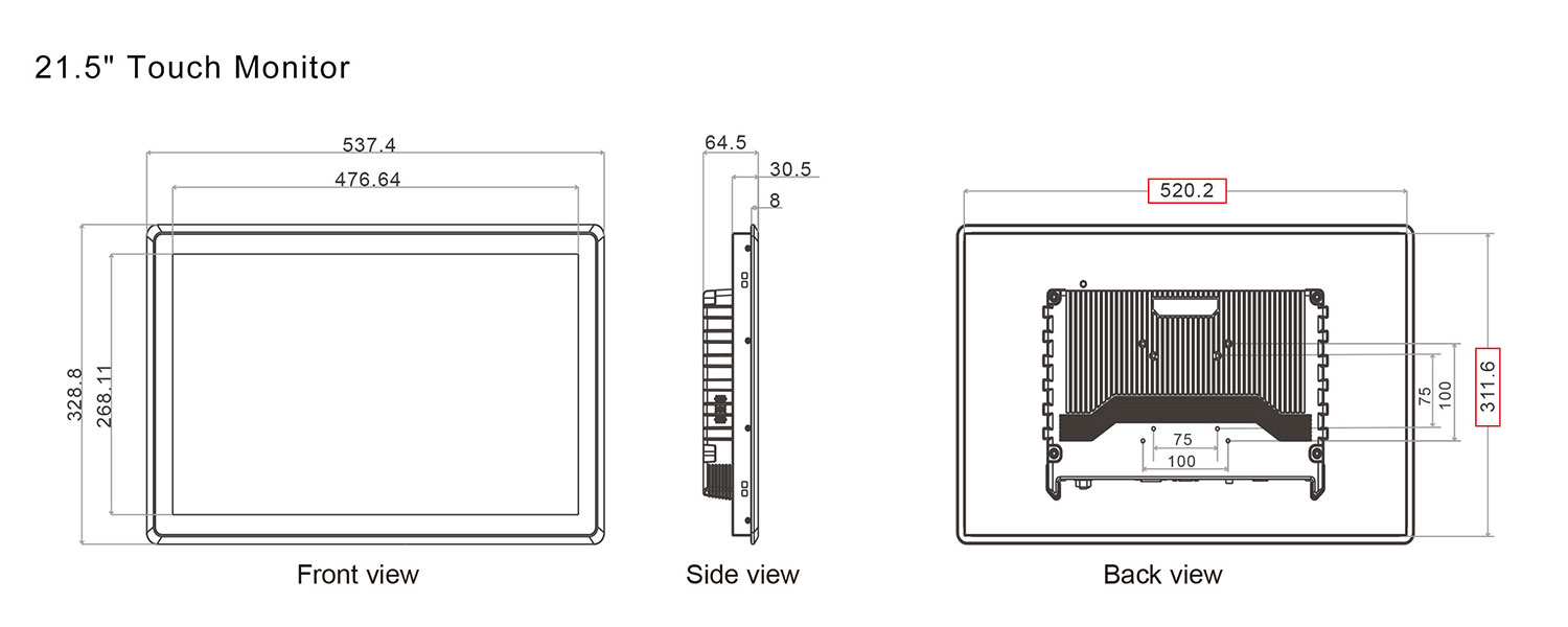 I-View™ PM-SH215-C109 Industrial Panel Mount TFT LCD Monitor with Multi Touch PCAP Touchscreen. I-View™ PM-SH215 offer 3 different types of input options for different applications.