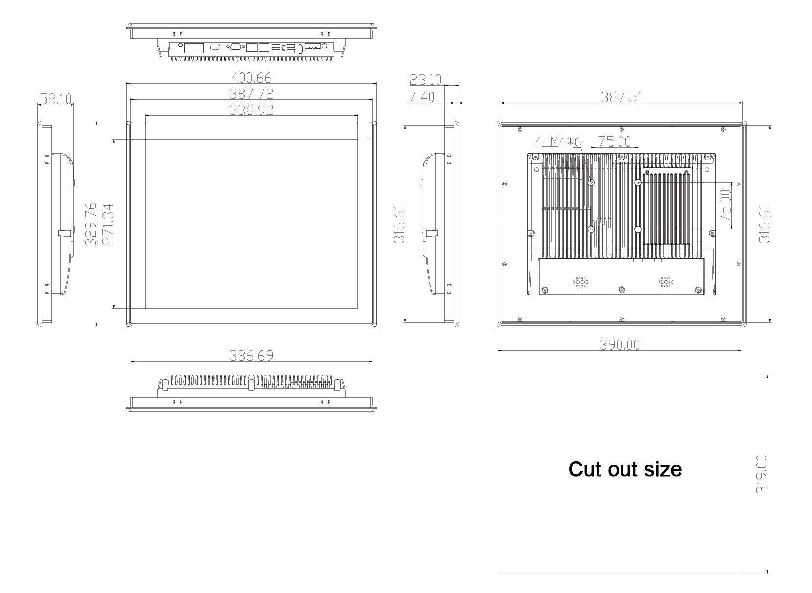 • 400.7(W) x 329.8(H) x 58.1(D) mm