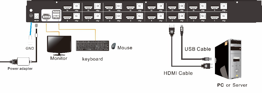 ⦁ One single device control 16 HDMI computers