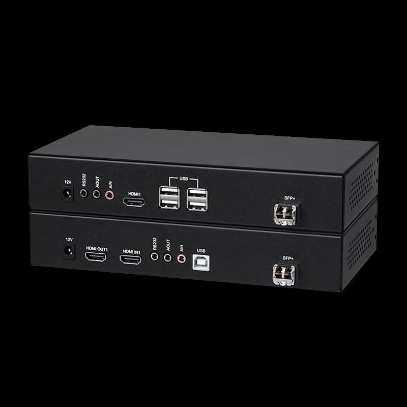 The KVM-FEX101H USB HDMI over fiber KVM extender integrates the latest HDBaseT™ technology and delivers HD HDMI video, USB and stereo audio signals up to 300m by using fiber optics; if the cable type is single mode, the transmitting distance is up to 10km.
