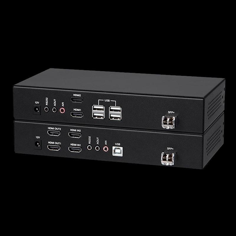 The KVM-FEX201H USB Dual HDMI over fiber KVM extender integrates the latest HDBaseT™ technology and delivers dual HD HDMI video, USB and stereo audio signals up to 300m by using fiber optics; if the cable type is single mode, the transmitting distance is up to 10km. A complete set of KVM-FEX201H including Transmitter (KVM-FEX201H_TX) and Receiver (KVM-FEX201H_RX).